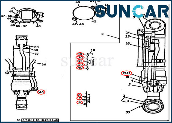 ブームのシールのキットの水圧シリンダ707-99-58260適合の小松の重い装置PC220-6 PC250LC-6L